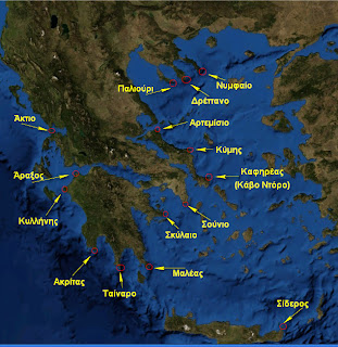 Καβάλας, Στρυμονικός, Ιερισσού, Σιγγιτικός(Αγίου Όρους), Κασσάνδρας, Θερμαϊκός, Παγασητικός, Μαλιακός, Βόρειος και Νότιος Ευβοϊκός, Σαρωνικός, Αργολικός, Κισσάμου, Χανίων, Αλμυρού, Ηρακλείου, Μαλίων, Μιραμπέλου