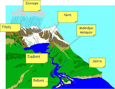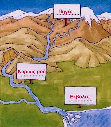 - τα μέρη από τα οποία αποτελείται ένας ποταμός